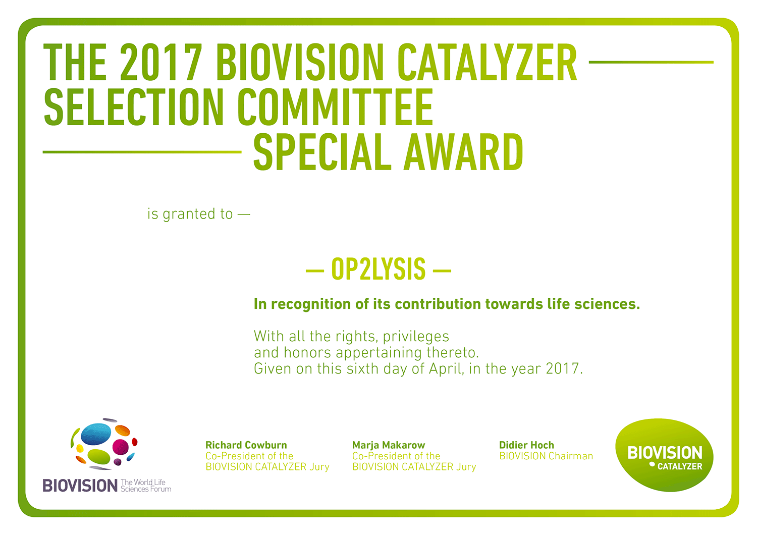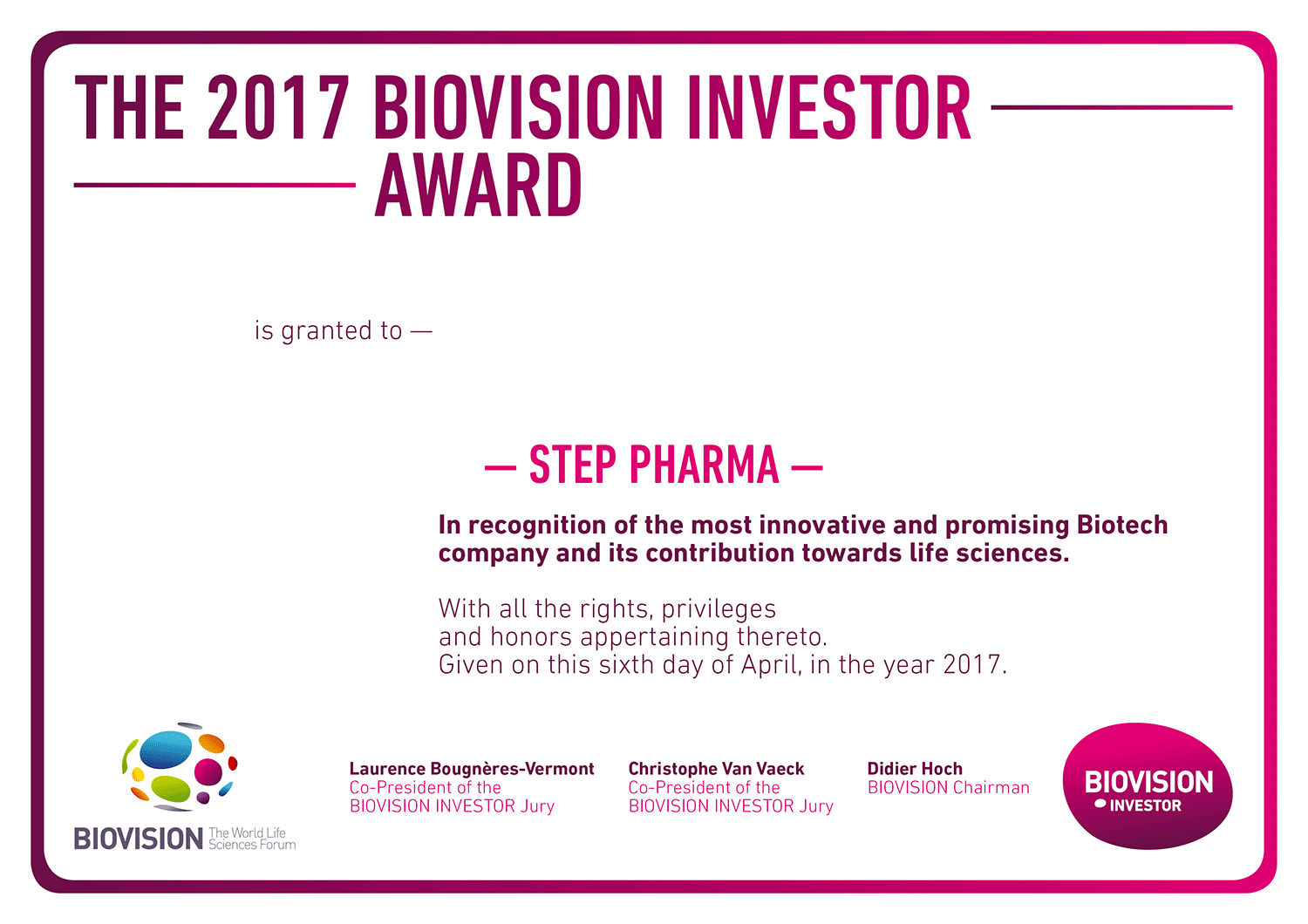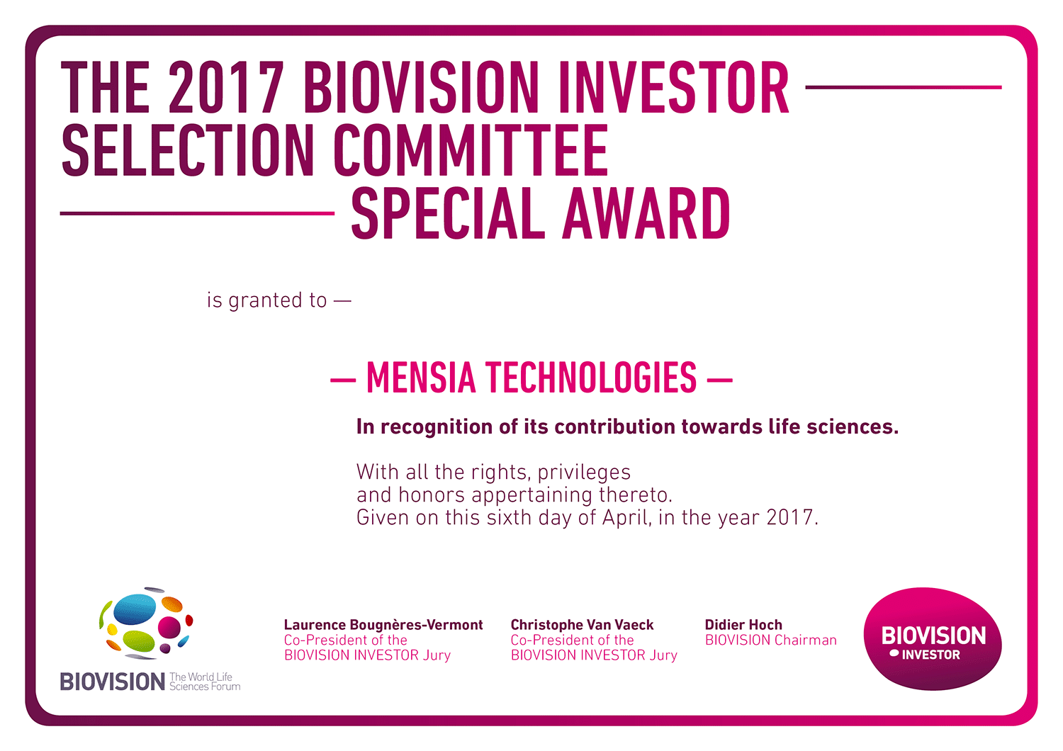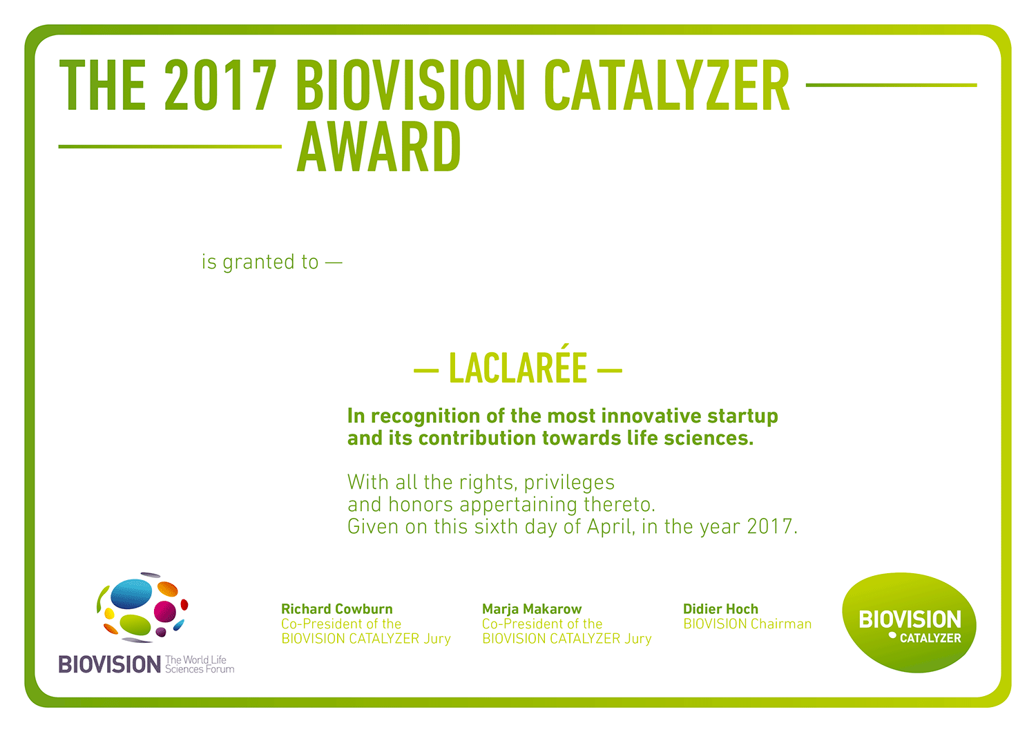 Diplômes Biovision